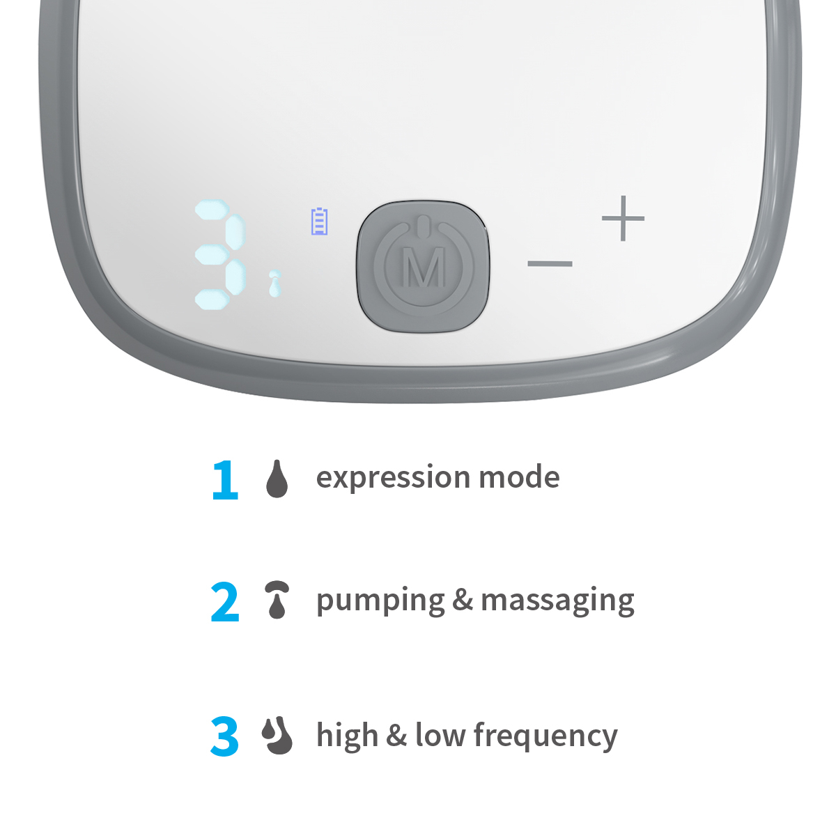 2. Modul 2 în 1 - Un ciclu compus din 8 mișcări de masaj urmate de 1 mișcare de aspirație. Acest mod este recomandat pentru a calma durerea îsanilor supraîncărcați și pentru a stimula sânii pentru a produce mai mult lapte în mai puțin timp.
