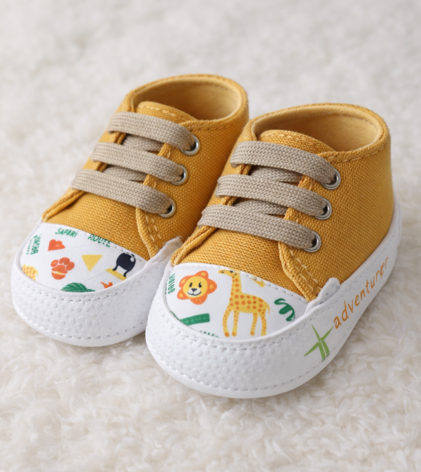 Acești pantofi pentru bebeluși cu imprimeu safari sunt perfecți pentru a completa orice ținută și pentru a adăuga un plus de stil garderobei micuțului tău.