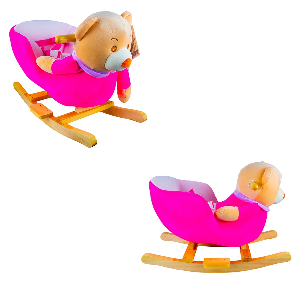 Balansoar pentru bebelusi, Ursulet, lemn + plus, roz, 60x34x45 cm
