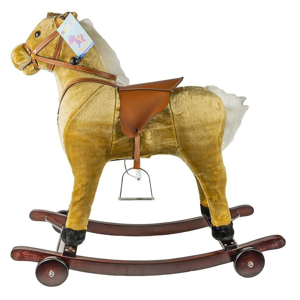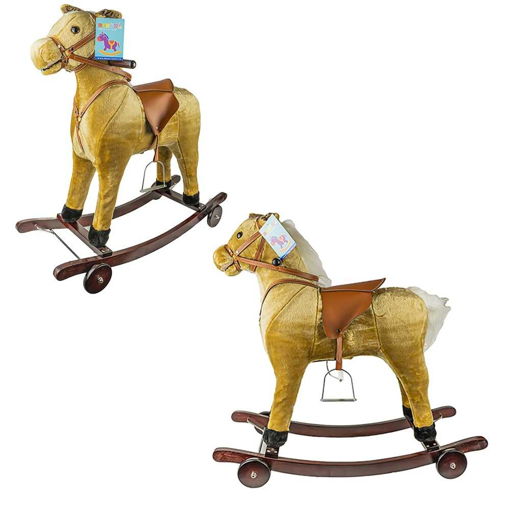 Calut balansoar, lemn + plus, maro, cu rotile, 86x37x78(h) cm