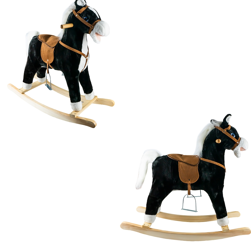 Calutul tip balansoar functioneaza cu baterii, iar prin apasarea uneia dintre urechi acesta fredoneaza o melodie pe cand prin apasarea celeilalte calutul emite sunete asemanatoarea trapului unui cal.