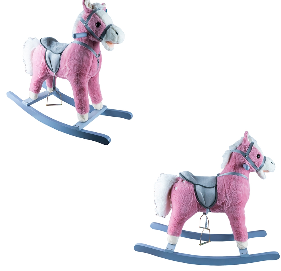 Balansoarul tip calut functioneaza cu baterii, iar prin apasarea urechilor acesta emite sunete, isi misca gura si codita, de asemenea, fredoneaza o melodie