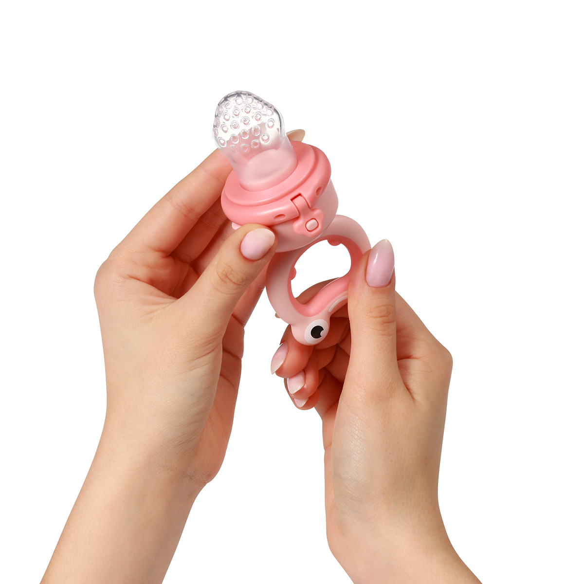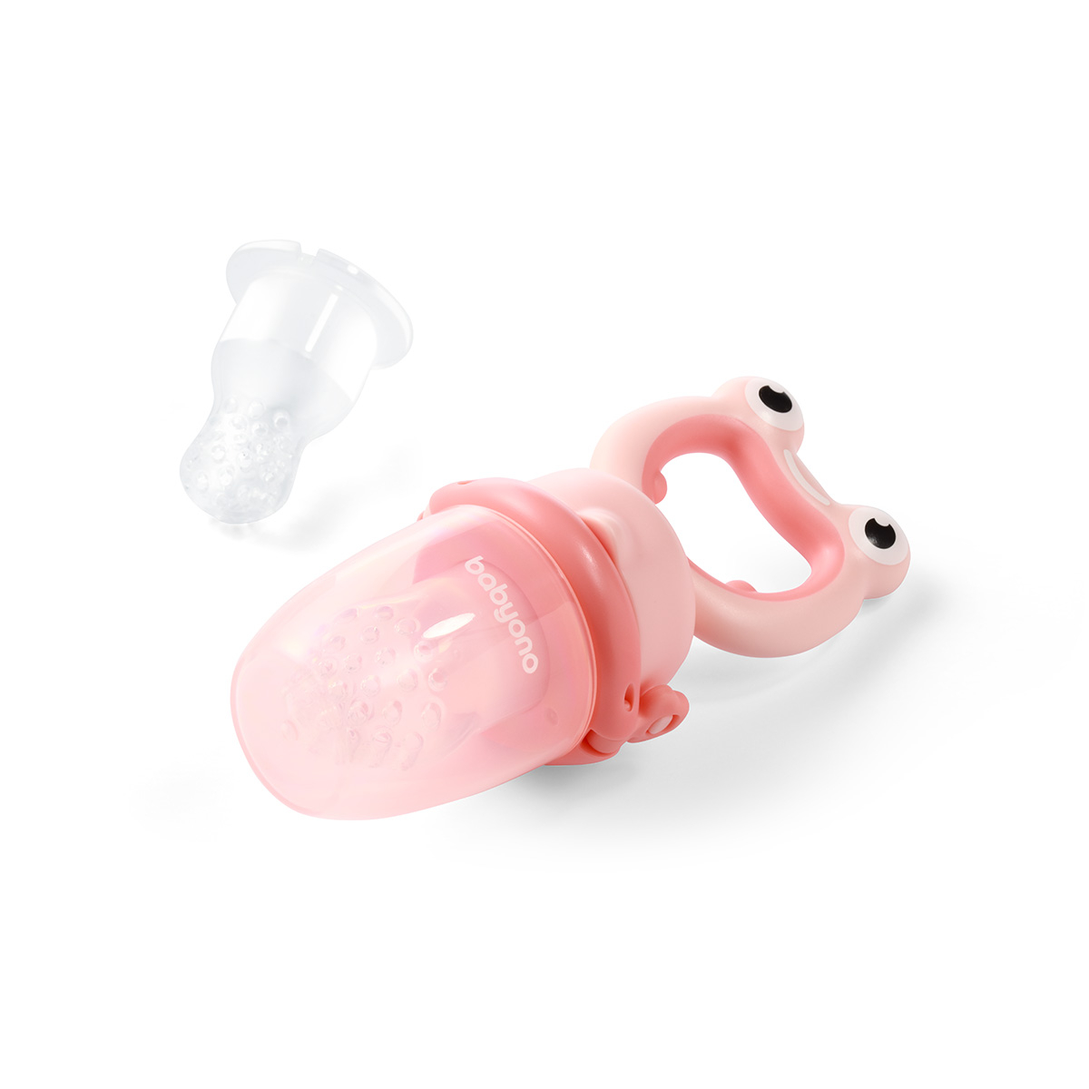 Dispozitivul de hranire este un ajutor de neînlocuit pentru bebeluși și copii mici, pe măsură ce incep diversificarea. Utilizați acest dispozitiv pentru a hrăni în siguranță bebelușul cu legume proaspete, fructe și alte alimente. Dispozitivul de hrănire va calma durerile gingivale ale bebelușului atunci când ii vor creste dinții. Datorită dimensiunii sale compacte, il poti lua cu tine oriunde. Existenta mânerului va încuraja copilul să mănânce singur.