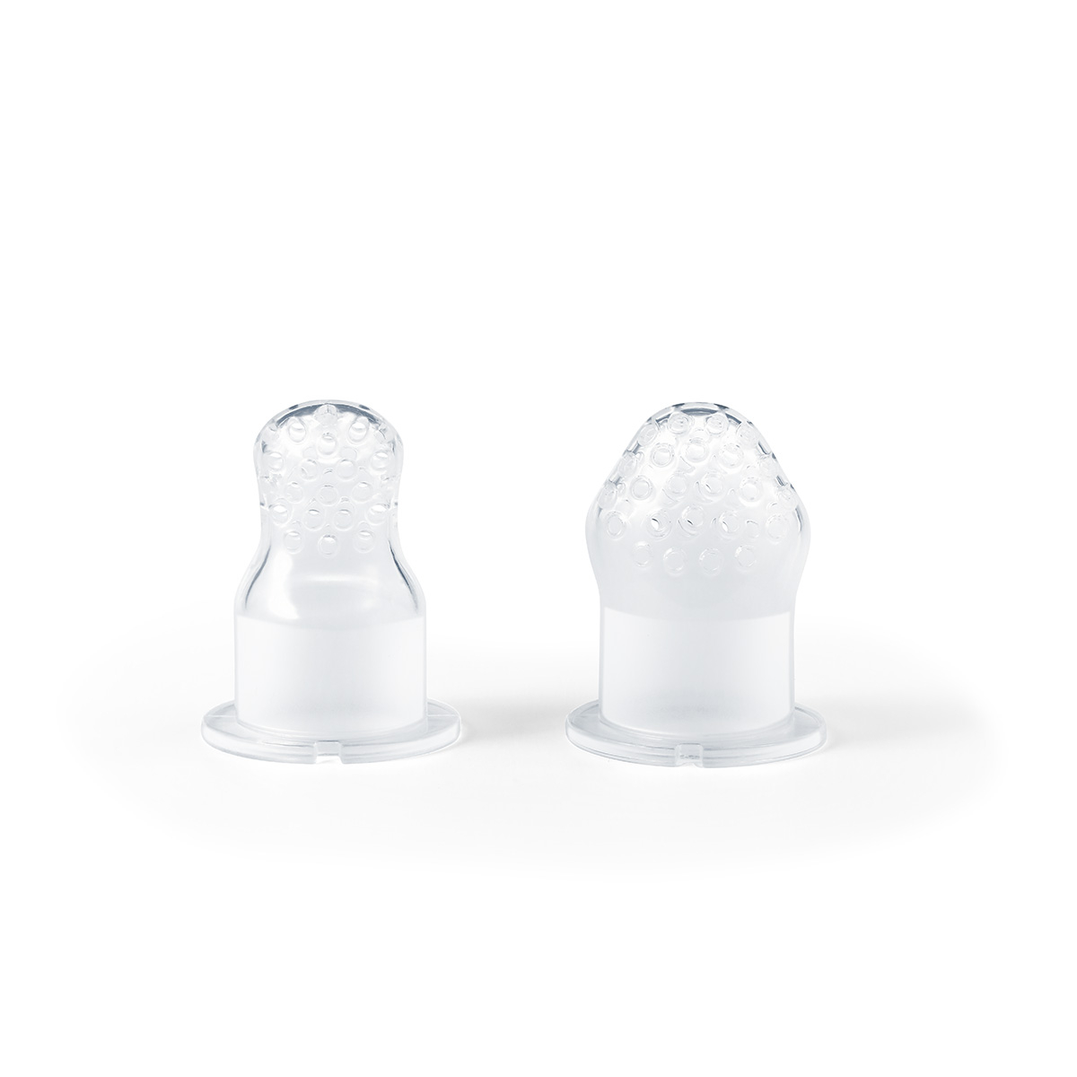 Setul incorporeaza doua marimi (6 si 12 luni) de suzete pentru a adapta produsul la varsta si indemanarea copilului.