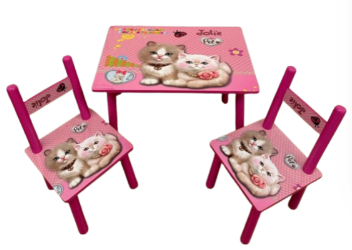 Toate colturile măsuței și ale scaunului sunt rotunjite pentru protecția celor mici.