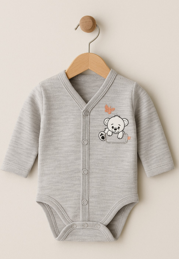 Body cu manusa, nou nascut, 0-3 luni, Cu brodererie, Gri