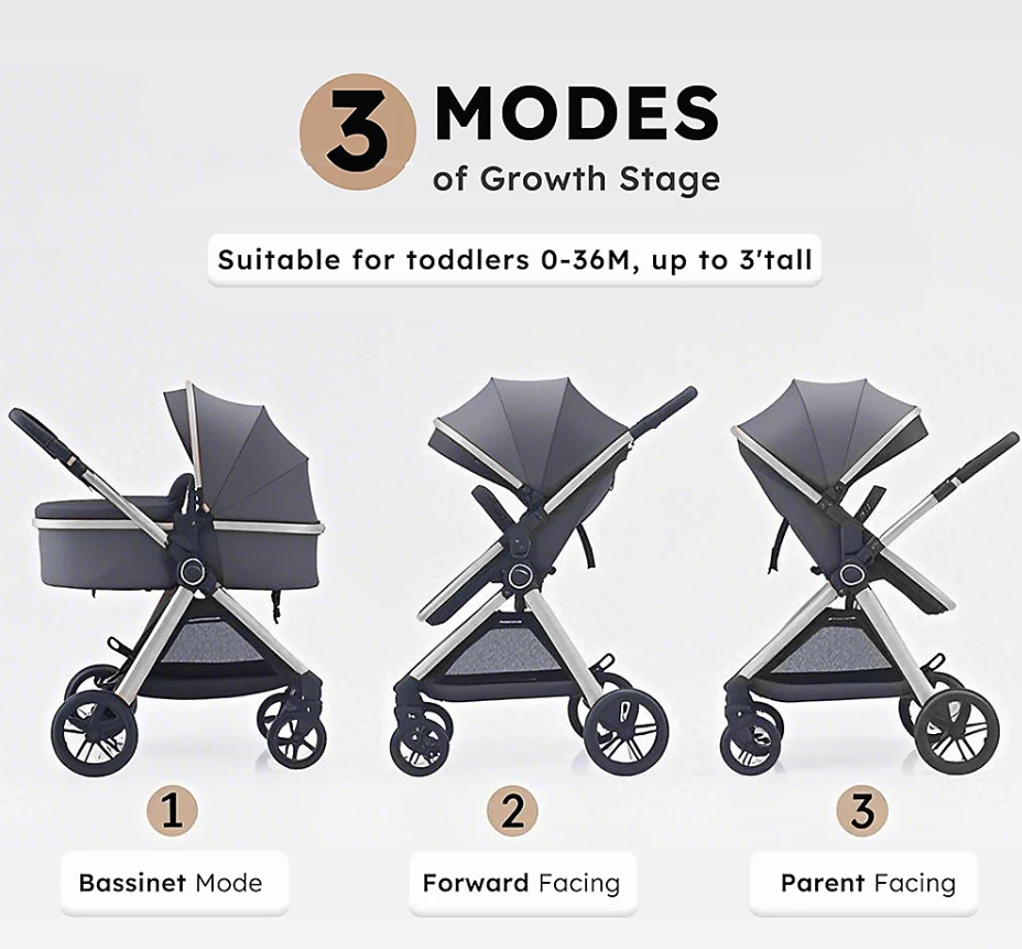 Carucior 3 in 1 inseamna 2 piese cu 3 moduri de utilizare