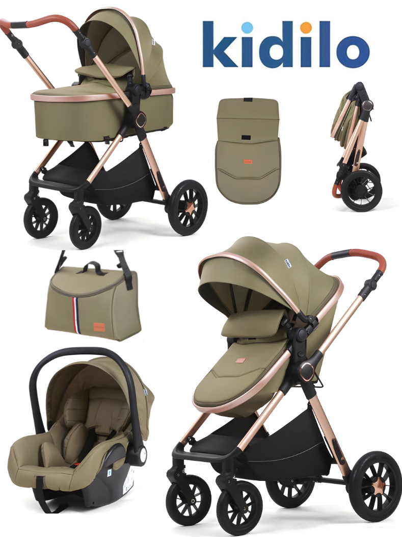 Carucior, 3 in 1, Geanta de scutece, Suspensie interioara, Original Kidilo, Roata din cauciuc siliconat