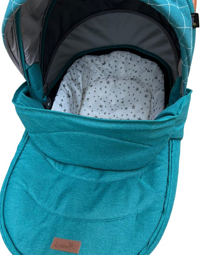 Carucior Bubu-Still, 3 in 1 , 3 piese distincte, suspensie pe roata, reversibil, Turcoaz
