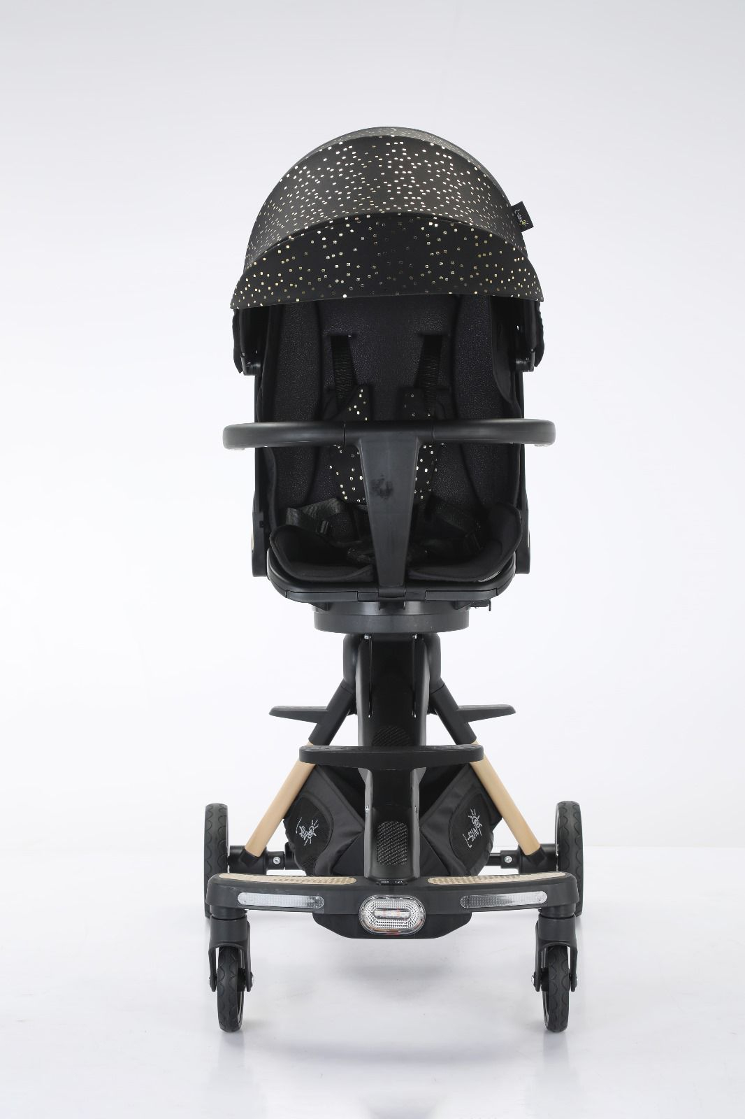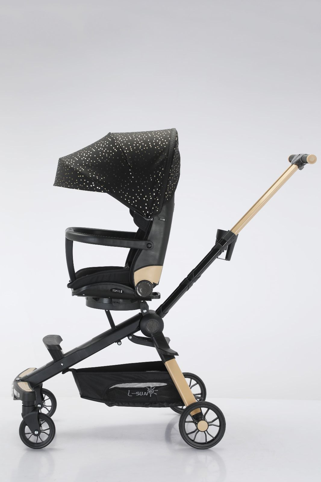 Caruciorul este bidirectional, copilul poate fi asezat cu fata sau cu spatele fata de parinte, deoarece are un sistem rotativ sub scaun, foarte usor de utilizat. Este un carucior compact, usor, dar rezistent, cu cadru din otel, usor de pliat care ocupa spatiul minim fiind indicat pentru calatoriile cu avionul.