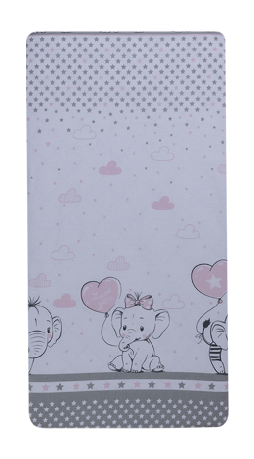 Cearceaf din bumbac pentru saltea 120x60 cm, Love Elephants Roz, Beberoyal, CF-001-102