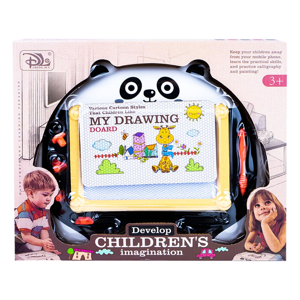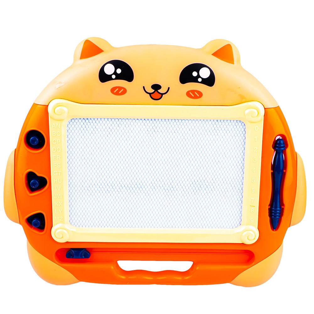 Set tablita magica in forma de pisicuta, pix si stampile magnetice, pentru dezvoltarea simtului scrisului, a creativitatii si a simtului artistic. Caracteristici: - tablita magica cu zone de culori diferite: in functie de zona in care se scrie/deseneaza culoarea este diferita - desenul sau scrisul ramane imprimat pe tablita pana la actionarea manerului de sters - setul contine si 2 stampile magnetice - forma tablitei este atractiva si viu colorata - tablita poate fi usor transportata cu ajutorul manerului - incurajeaza scrisul/desenul, creativitatea si simtul artistic Dimensiune ambalaj: 32x23x3 (cm) Greutate: 300 g Varsta recomandata: +3 ani Avertizare! Produsul este nou si comercializat in ambalajul original al producatorului. Imaginile de pe acest site au caracter informativ. Nuanta, tonul si intensitatea culorii pot varia in functie de monitor. Ambalajul trebuie indepartat, recuperat si aruncat de catre un adult inainte de a se da spre utilizare copilului. Nu lasati ambalajele produselor la indemana copiilor. Se recomanda utilizarea produsului sub supravegherea unui adult. Produsul poate contine piese mici care se pot inghiti sau inhala de cei mici, existand pericolul de sufocare sau nu este potrivita copiilor mai mici de 3 ani. Pastrati instructiunile si etichetele pentru referinte viitoare. Pastrati produsul departe de foc, si nu il lasati in preajma temperaturilor ridicate si a umiditatii. Nerecomandat copiilor cu varsta mai mica de 3 ani!