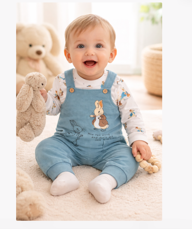 Set salopeta cu bluzita, Iepuras, Vernil