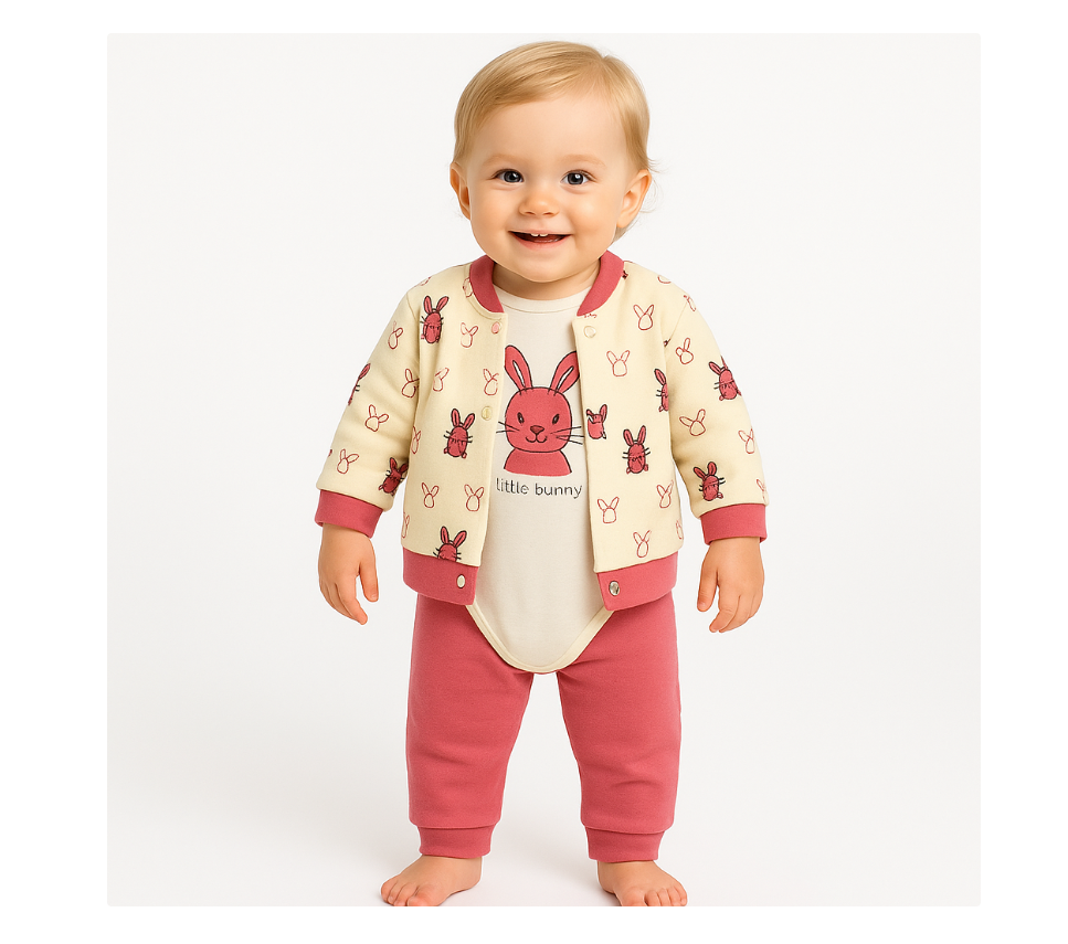 Compleu 3 piese, cu body, Iepuras motat