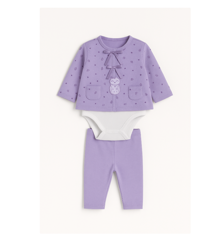 Compleu 3 piese, cu body, Iepuras, Mov