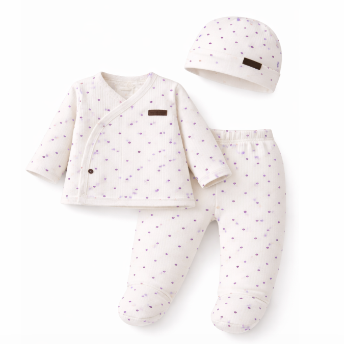 Alege un set pentru nou-născuți din 3 piese, realizat din bumbac rib moale, cu imprimeu delicat cu inimioare roșii, perfect pentru ținute de zi cu zi sau pentru un cadou special. Designul minimalist, fără dantelă, oferă un aspect modern și curat, ideal pentru fotografii de produs sau purtare zilnică.