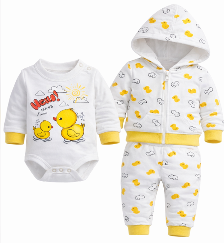 Set haine bebeluși 3 piese „Hello Ducks” – confort, stil și căldură pentru micuțul tău