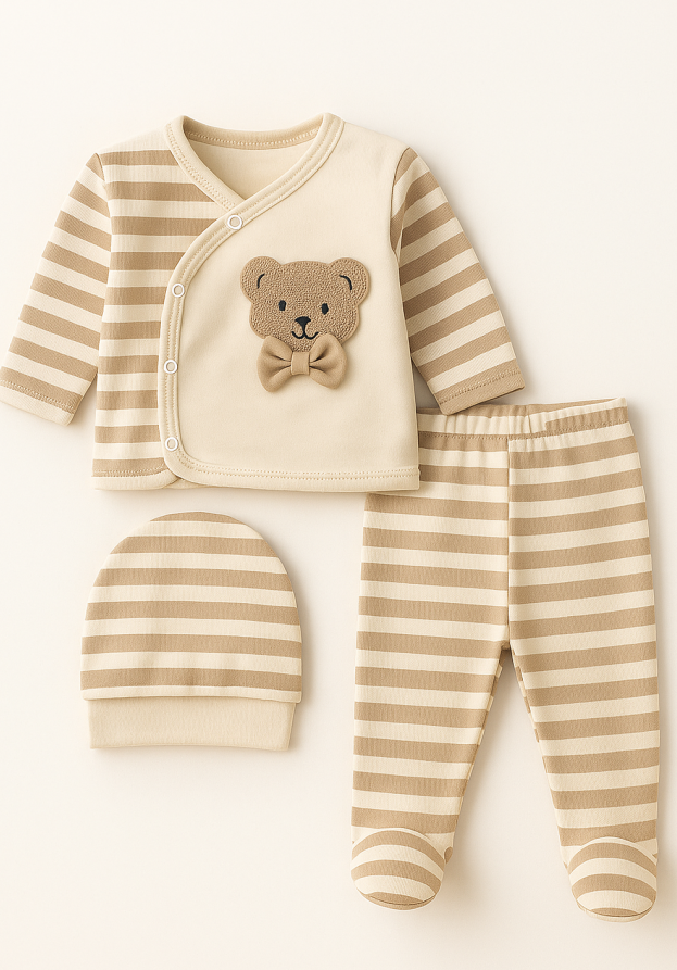 Set hainute, 0-3 luni, Ursulet cu papion, Bej