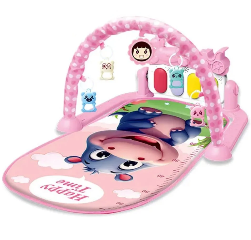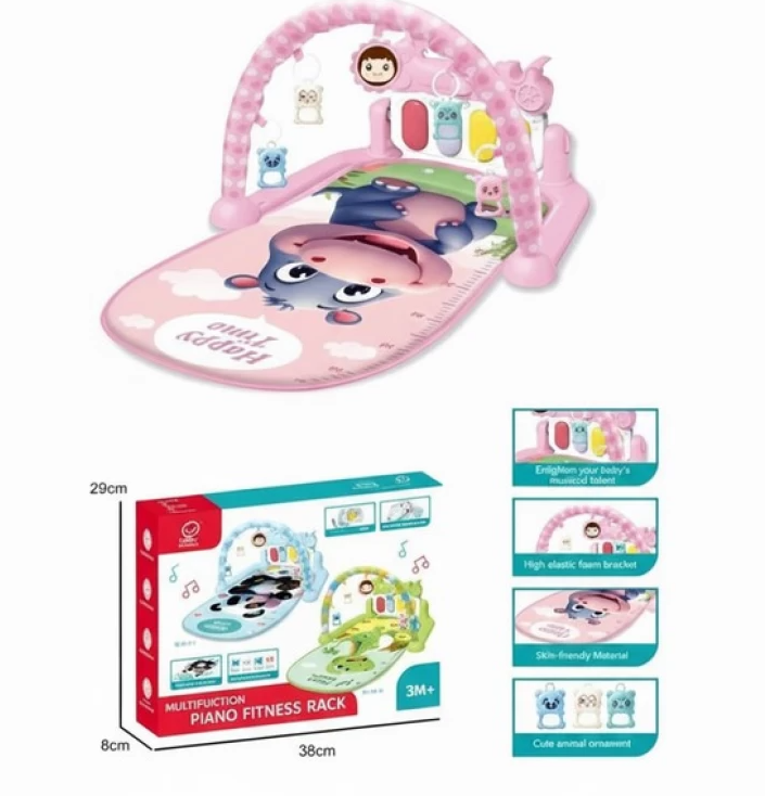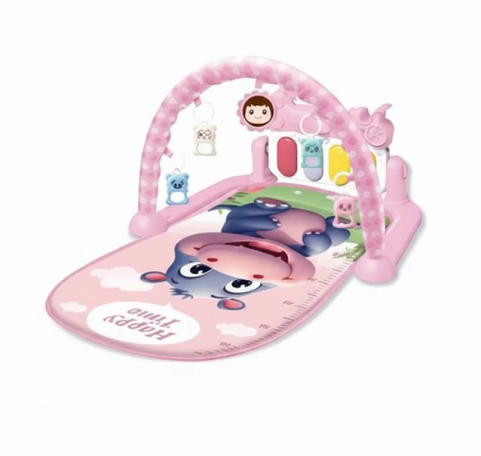 Covoras de joaca, tip salteluta, cu pian si arcada cu jucarii, centru de activitati bebelusi, +3 luni, roz