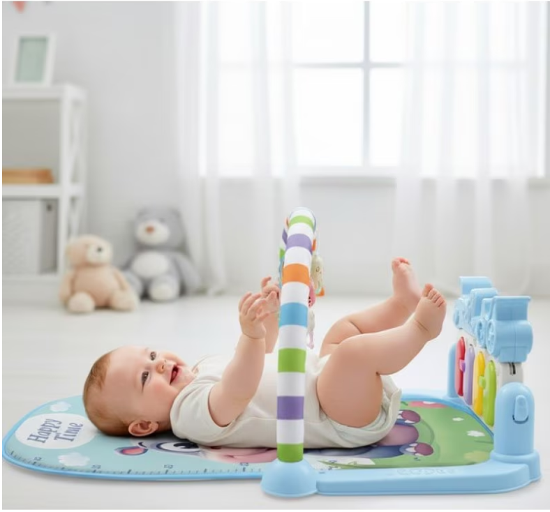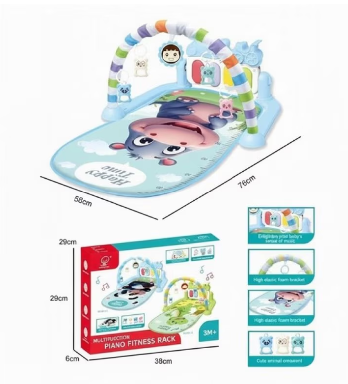 Prevazut cu jucarii suspendate colorate si functia de pian care se activeaza atunci cand bebelusul da din picioruse, acest covoras stimuleaza coordonarea, simturile si motricitatea celor mici.