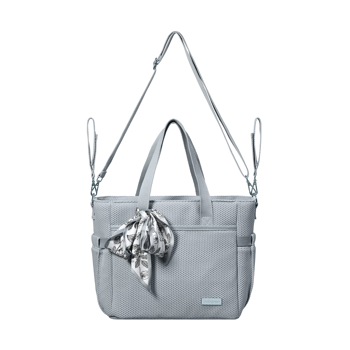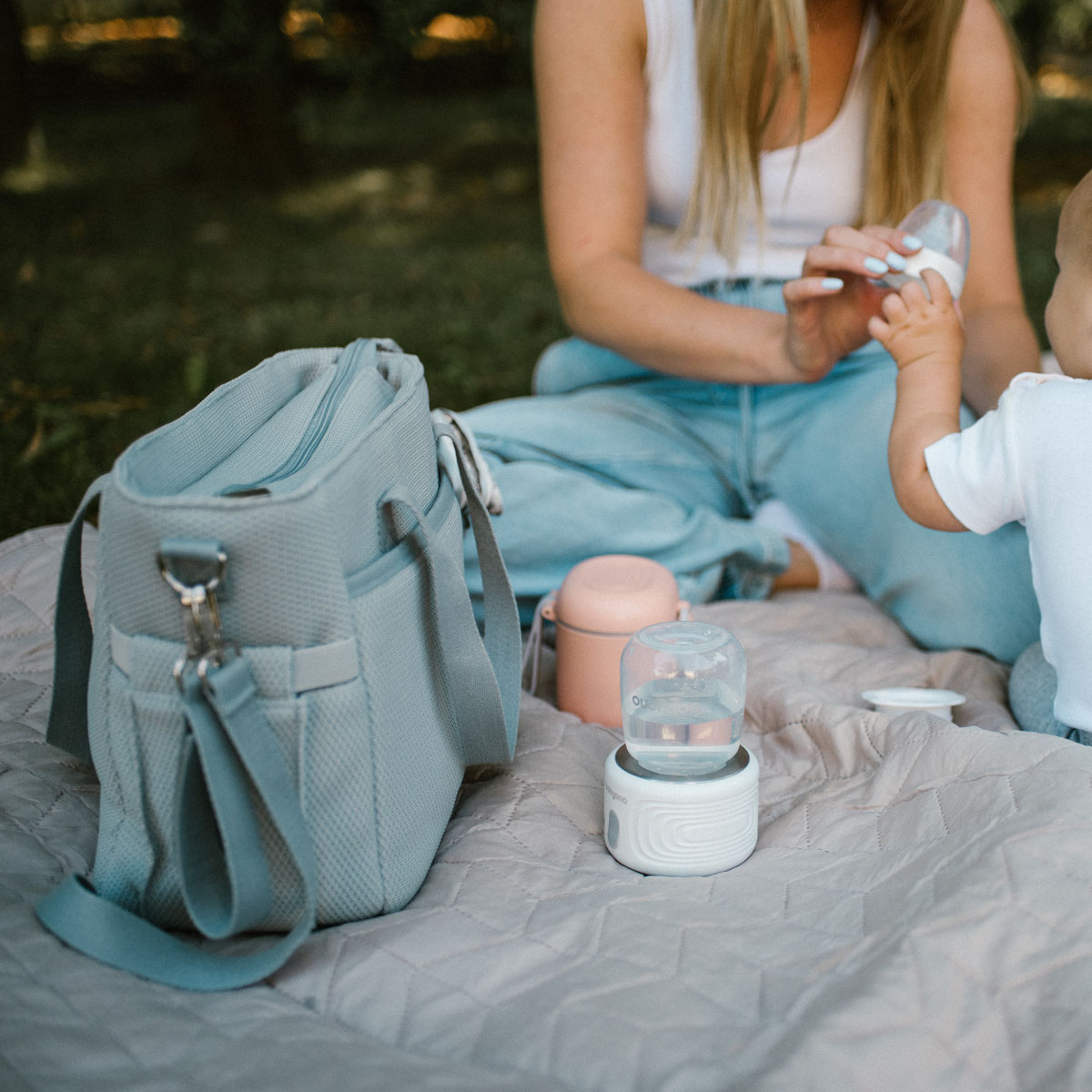 O poți atașa cu ușurință la cărucior, o poți purta pe umăr sau o poți ține în mână, după bunul plac.