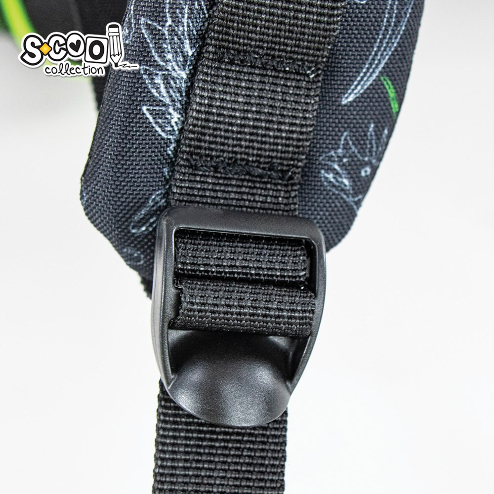 - Bretelele sunt usor ajustabile in functie de inaltimea copilului si greutatea din interiorul ghiozdanului. Acestea sunt buretate la nivelul umerilor, au exteriorul din poliester si plasa si prelungire din banda textila, reglabila ca lungime. In plus, au atasata o curea transversala, de conectare a acestora. Benzile reflectorizante dispuse pe bretele asigura o mai buna vizibilitate in conditii meteo neprilnice, ceata sau intemperii.