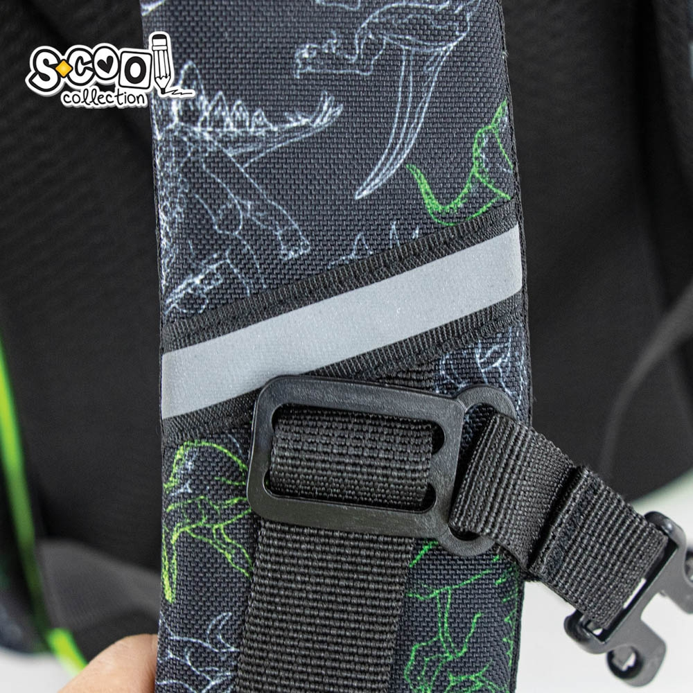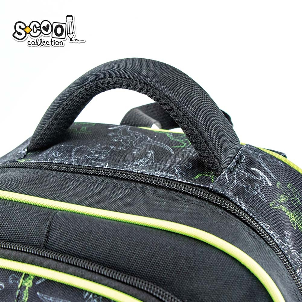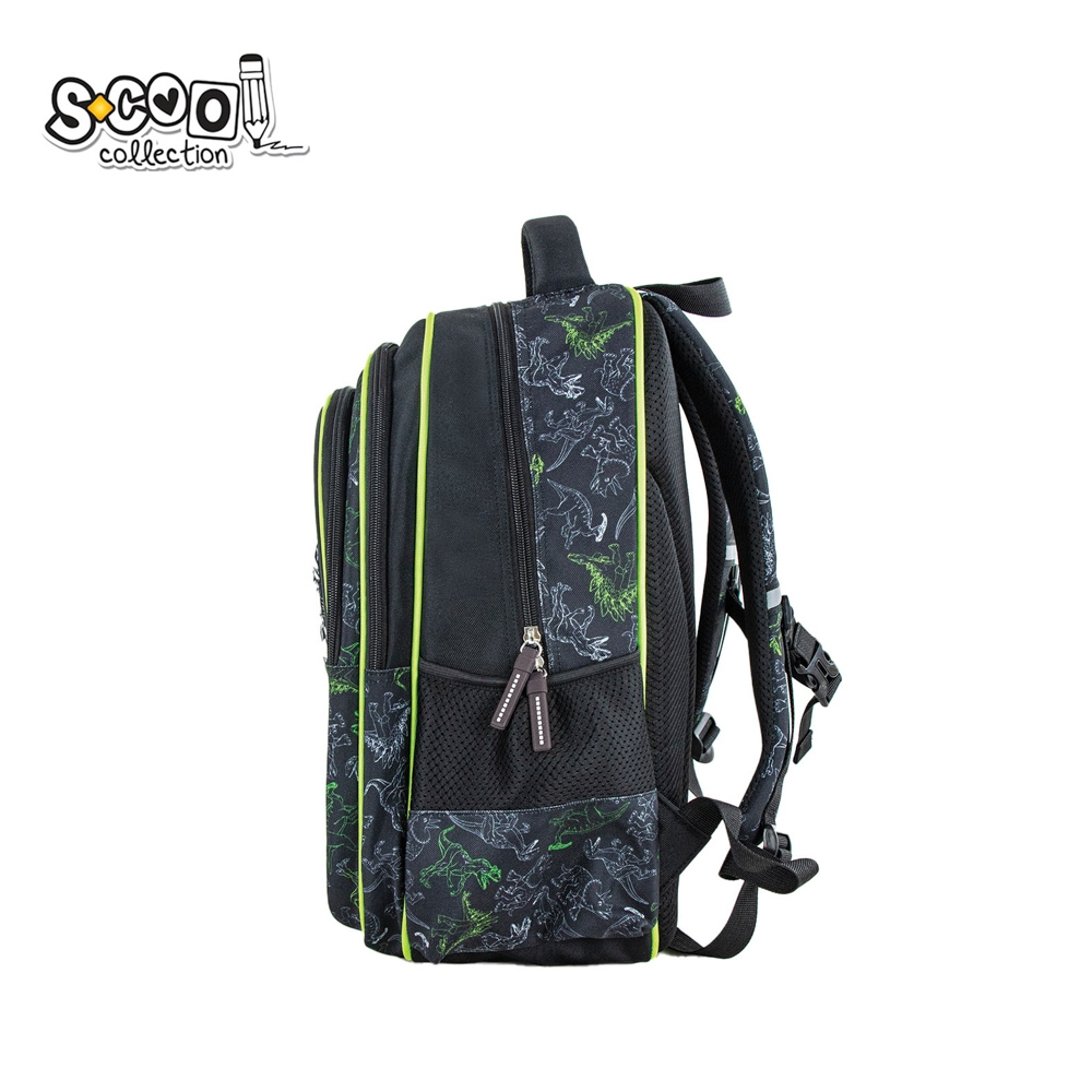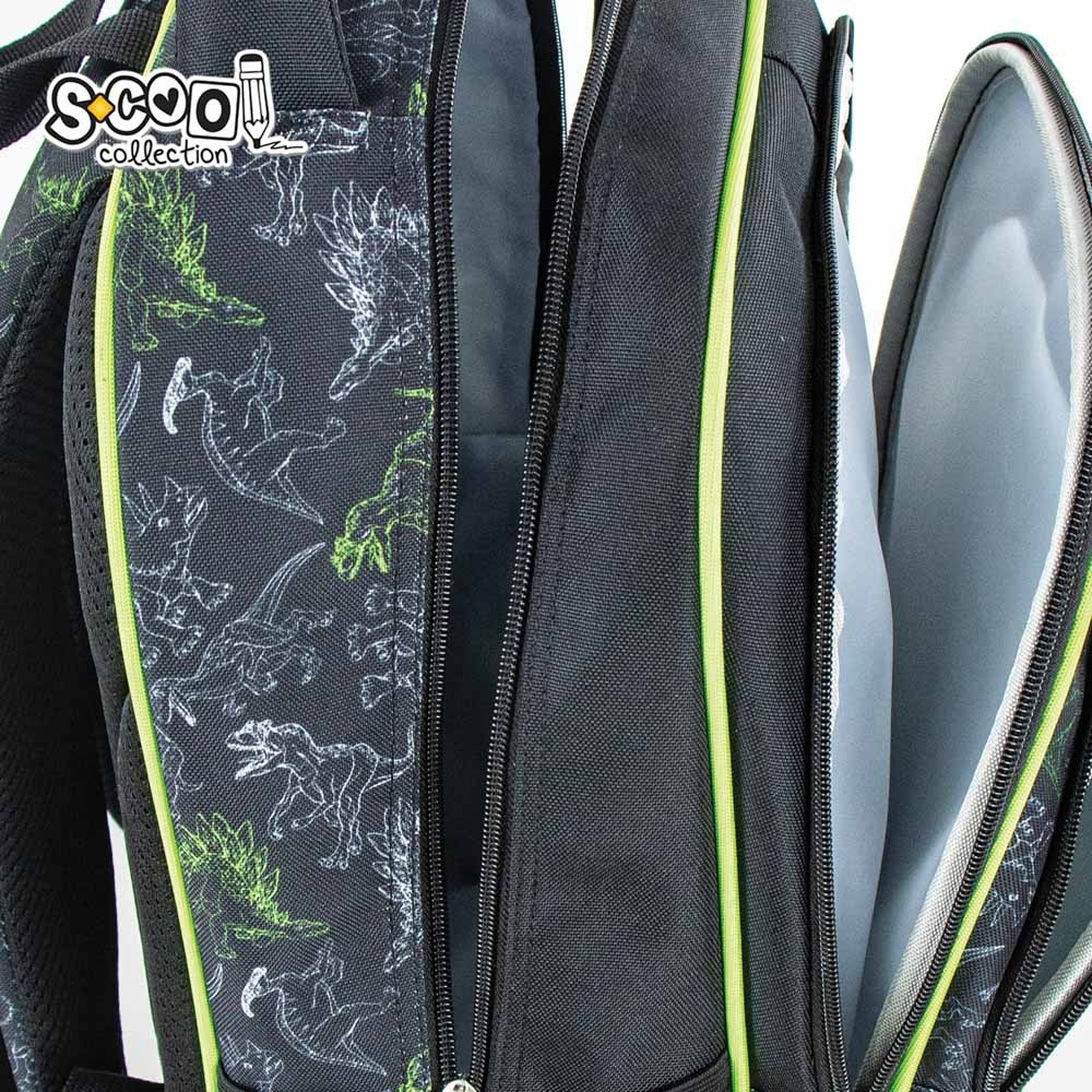- Ghiozdanul 3D DINOSAURS are un compartiment principal cu doua separatoare, un compartiment secundar cu organizator, un buzunar frontal, doua buzunare laterale, inchidere cu fermoare din plastic, ce au cursor metalic cu maneta decorativa din cauciuc, bretelele buretate, ajustabile, prevazute cu o curea de conectare si benzi reflectorizante, doua manere, baza cu doua picioruse stabilizatoare din cauciuc.