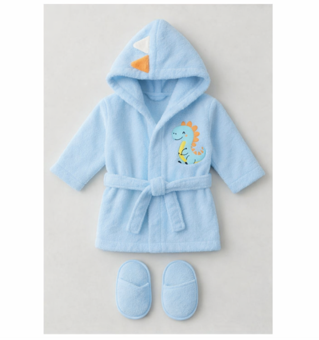 Halat de baie, cu gluga si papucei, Capison animalut, Albastru