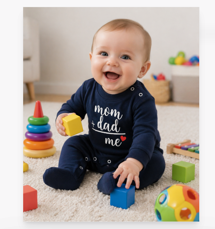 Designul modern „Mom + Dad = Me” adaugă un plus de personalitate și o face alegerea perfectă pentru ședințe foto, cadouri sau primele amintiri speciale.