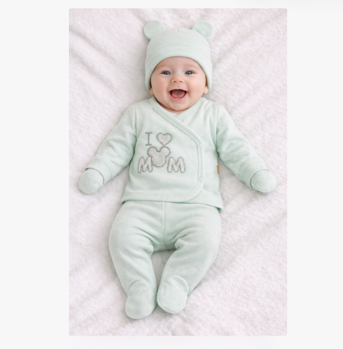 Set adorabil pentru bebeluși, perfect pentru primele luni de viață (0-3 luni)! Fabricat din bumbac pieptănat moale și delicat, asigurând confort maxim pentru pielea sensibilă a bebelușului.