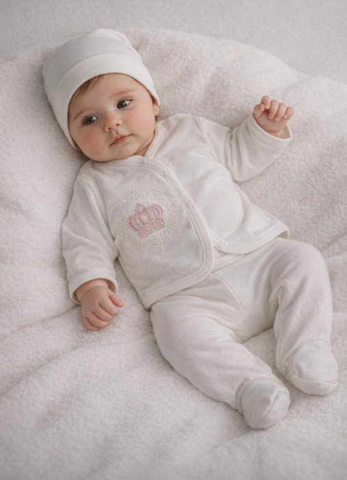 Îmbracă micuțul tău în confort absolut cu acest set rafinat din bumbac organic. Materialul delicat și sigur pentru pielea sensibilă a bebelușilor oferă o senzație plăcută la atingere și menține temperatura optimă a corpului.