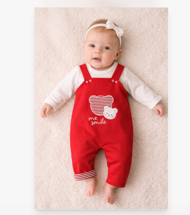 Salopeta este confecționată dintr-un amestec delicat de 80% bumbac și 20% poliester, oferind un echilibru perfect între confort și durabilitate. Bumbacul moale asigură o senzație plăcută la atingere, în timp ce poliesterul contribuie la rezistența și menținerea formei salopetei, chiar și după multiple spălări. Mai mult, materialele utilizate sunt fără substanțe alergene, protejând pielea sensibilă a bebelușului de iritații și alergii.