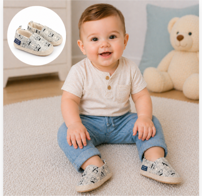 Pantofi pentru bebelusi din material textil, ideali pentru sezonul cald.