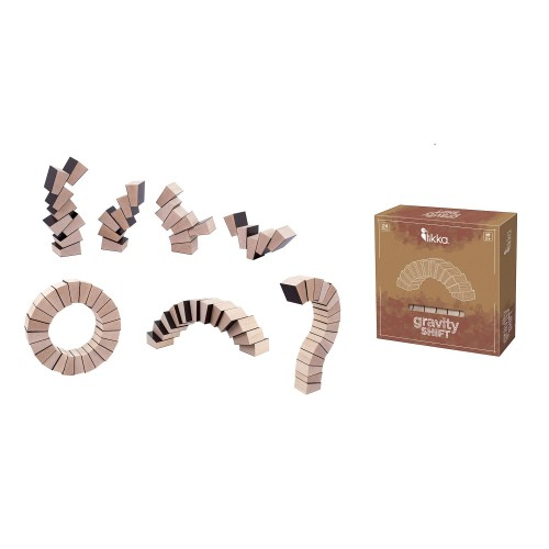 GRAVITY SHIFT - Joc revolutionar care sfideaza legile gravitatiei, recomandat jucatorilor cu varsta peste 3 ani. Cele 24 de cuburi din lemn in forma de trapez avand 2 fete magnetice, cu parte magnetica se pot aseza in forme desprinse parca dintr-o alta dimensiune. Fie ca vine vorba de cercuri, spirale sau turnuri, piesele sub forma de trapez, te vor uimi si iti vor stimula imaginatia. Dimensiunea cutiei-ambalaj este de aproximativ 22X22X4.5 cm