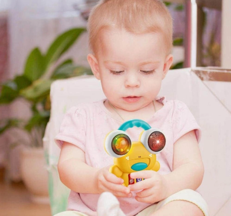 Broscuta distractiva va introduce copilul dumneavoastra in lumea experientelor muzicale, oferindu-i o varietate de melodii, sunete si cantece. Apasarea tastelor este insotita de aprinderea luminilor colorate in ochii broscutei in ritmul liniei melodice.