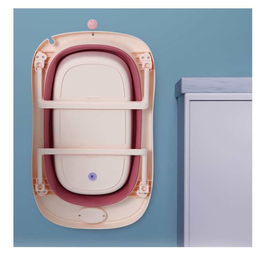 Set Cadita pliabila pentru bebelusi Beberoyal, cu termometru digital si dop de scurgere, Roz, 81cm CD-005-006 + Suport Textil Baie Bebelusi, Universal, Carlige prindere, Beberoyal, CD-008-123