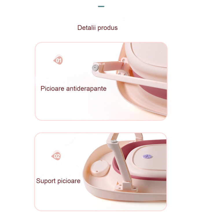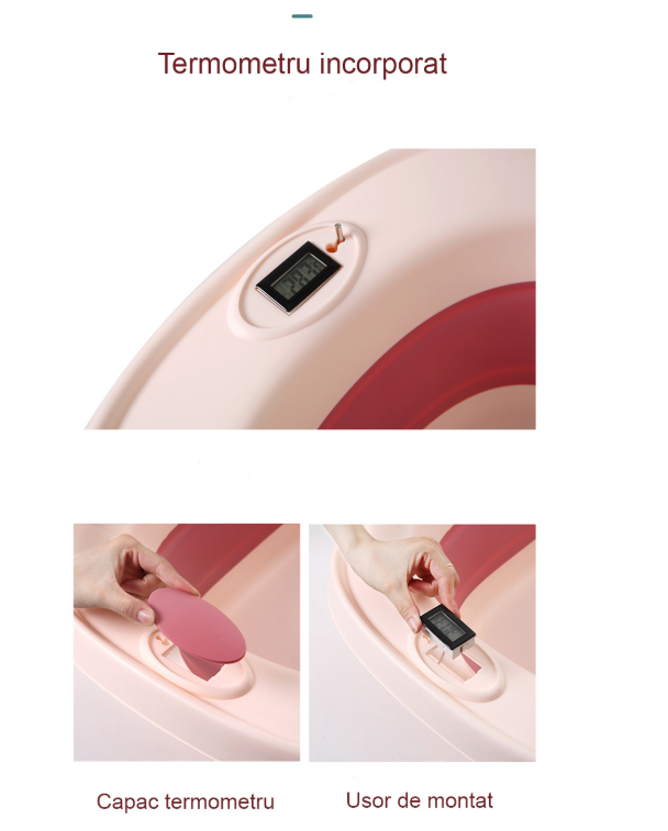 Cadita pliabila pentru copii Beberoyal este un produs inovator, modern, care se pliaza cat ai zice “baita”, are un termometru digital care spune exact daca apa e perfecta si picioruse antiderapante ca sa nu alunece nici…gandurile! Confortabila oriunde te afli!