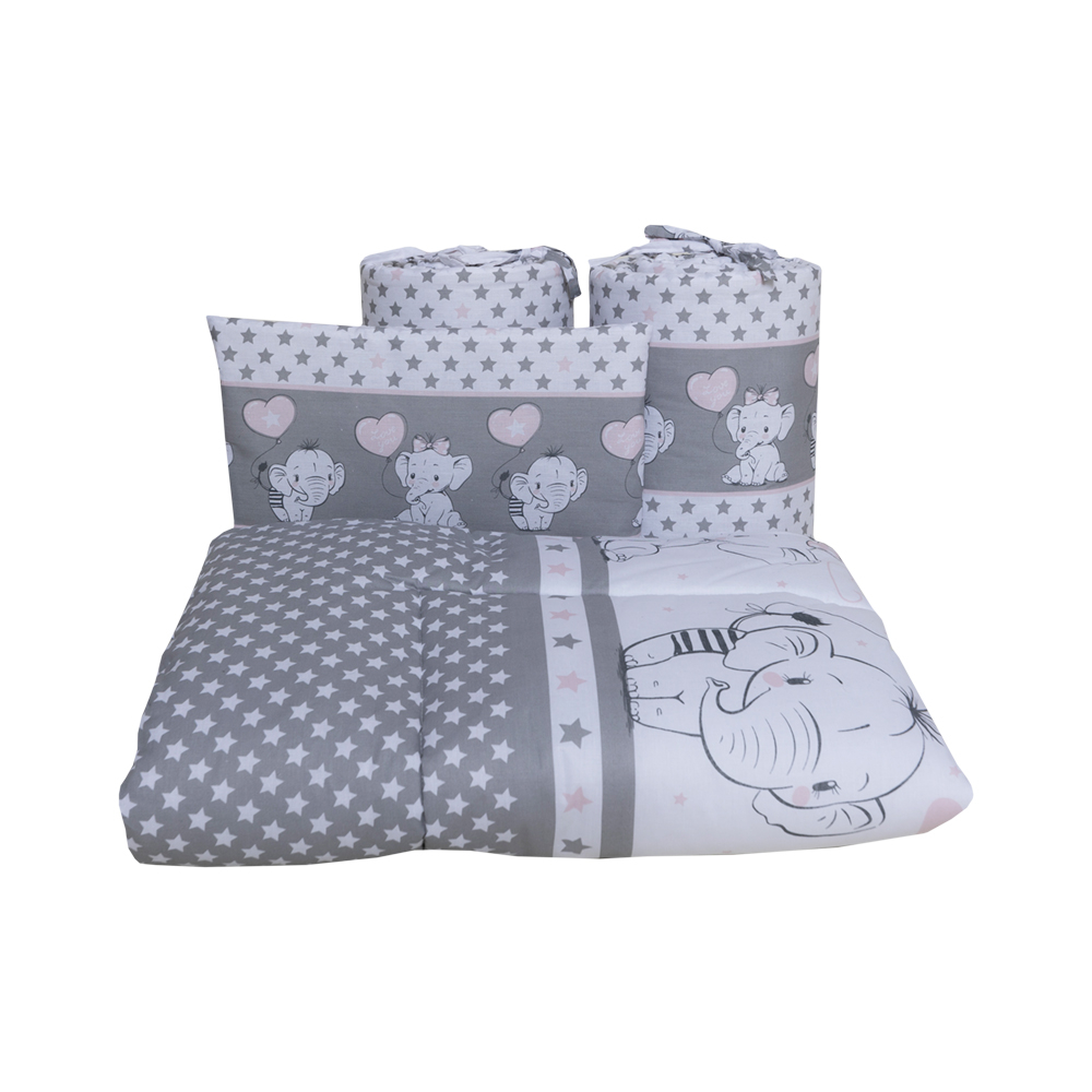 Set lenjerie bumbac 3 piese pentru saltea de 140 x 70 cm, Love Elephants Roz, Beberoyal