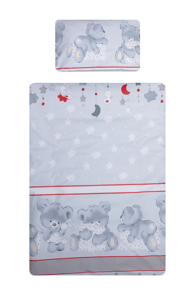 Set lenjerie bumbac 3 piese pentru saltea de 140 x 70 cm, Ursuleti iepurasi gri, Beberoyal, LJ003-140-059