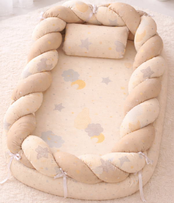 Acest babynest bej nu este doar un accesoriu practic, ci și un element decorativ adorabil pentru camera copilului.