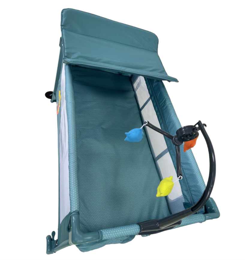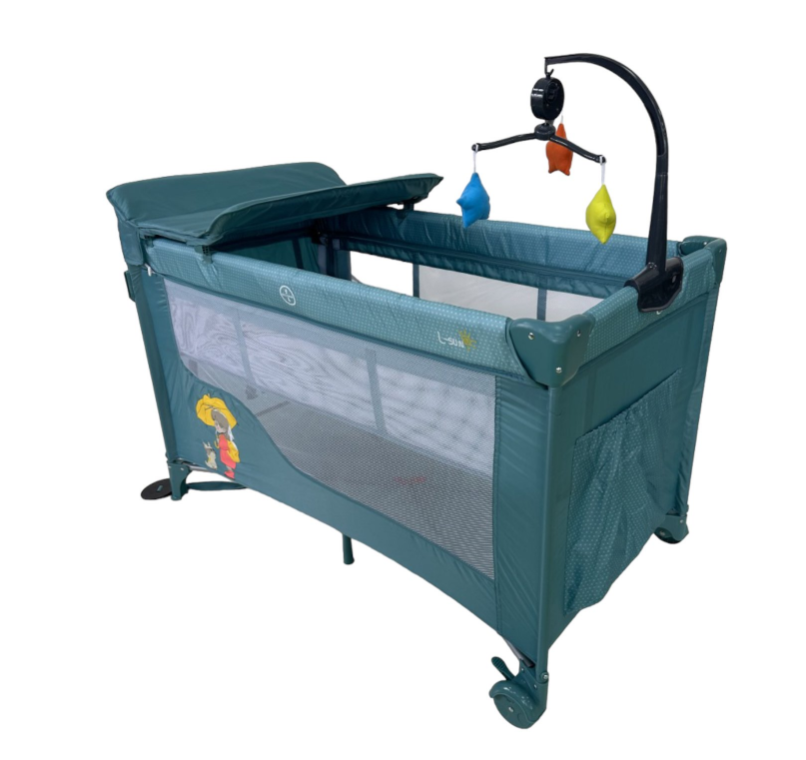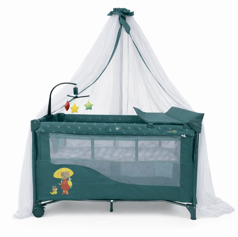 Patut bebelusi, L-Sun, cu laterala culisanta, pliabil, include masa de infasat, cu baldachin si jucarie carusel, Verde