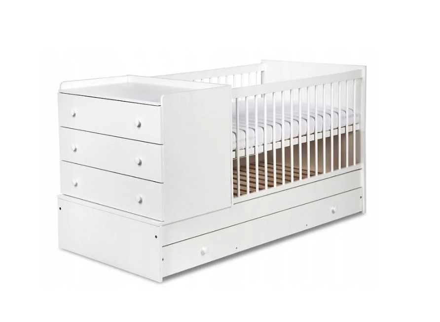 Acest patut transformabil bebelusi Klups KOMPAKT este confectionat din lemn si pal, fiind ideal pentru bebelusi, de la nastere si pana la varsta adolescentei. Este prevazut cu o comoda cu modul de infasat si 3 sertare. La demontarea modulului de infasat, comoda poate fi utilizata ca noptiera in varianta junior.