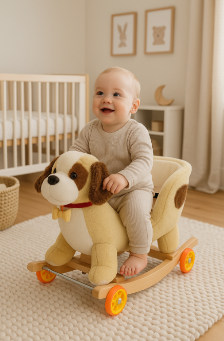 Copii vor adora sa urce pe jucaria magica datorita balansului inainte-inapoi al balansoarului din lemn.