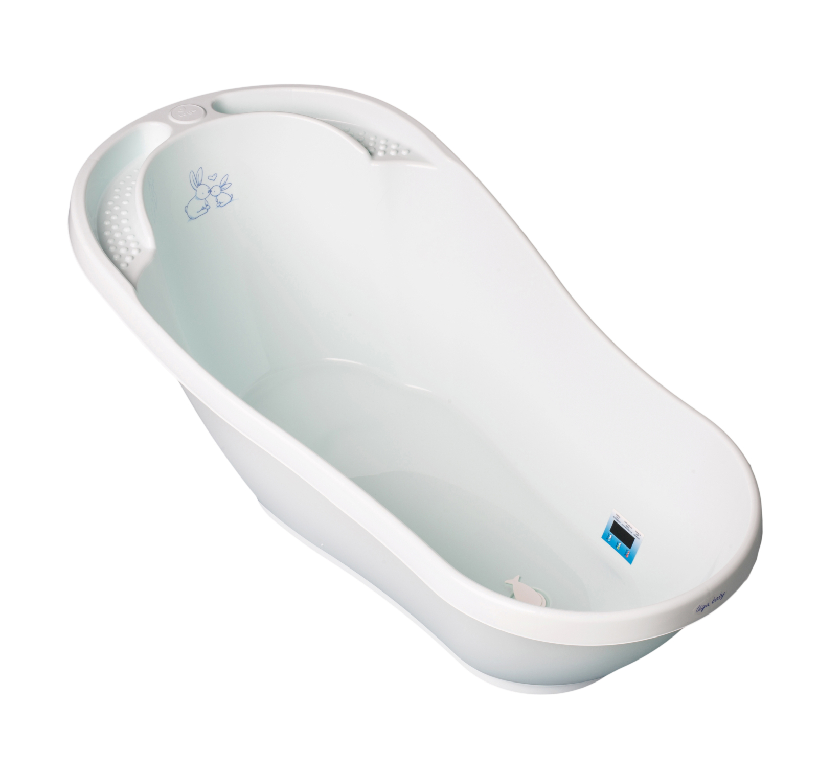 Cadita ergonomica pentru bebelusi Tega Baby cu senzor de temperatura si dop pentru scurgere, colectia Micutii Iepurasi, 92 cm, menta