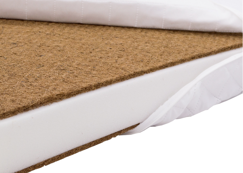 - aceasta saltea este confectionata din 2 straturi de fibra nuca de cocos si un strat de burete la mijloc