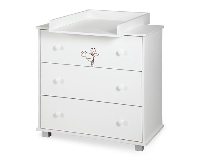 Comoda de infasat Safari Giraffe Alb 85(L) x 48(l) x 86(h) cm este confectionata din materiale de calitate superioara. Este prevazuta cu o masa de infasat si 3 sertare voluminoase.