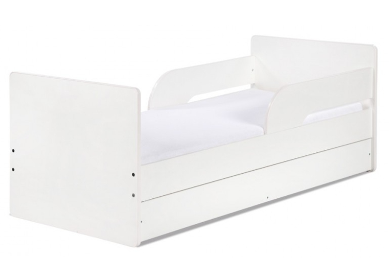 Acest pat pentru copii, este simplu, alb, confortabil, sigur si se potriveste cu orice decor.