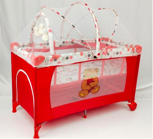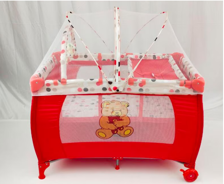 Lateralele mari sunt cu material de tip plasa, pentru o ventilatie buna, dar si pentru ca parintii sa poata vedea si supraveghea copilul in timpul somnului sau cand se joaca.