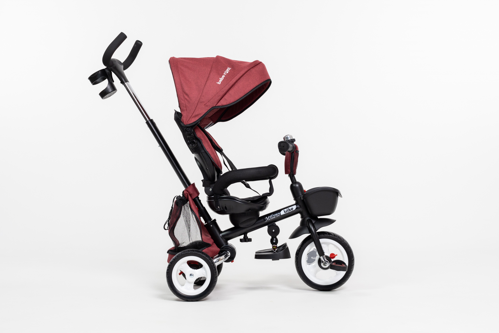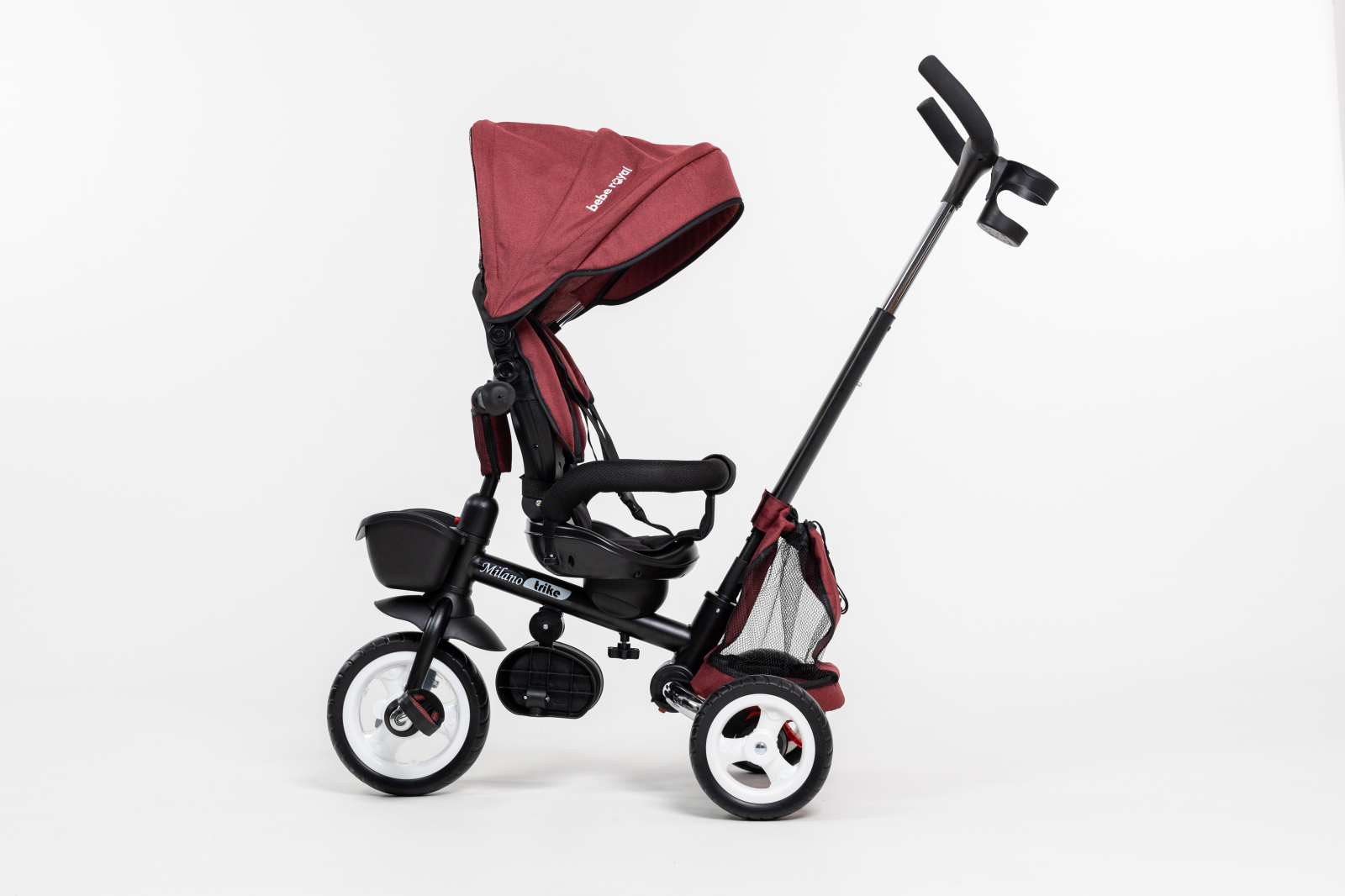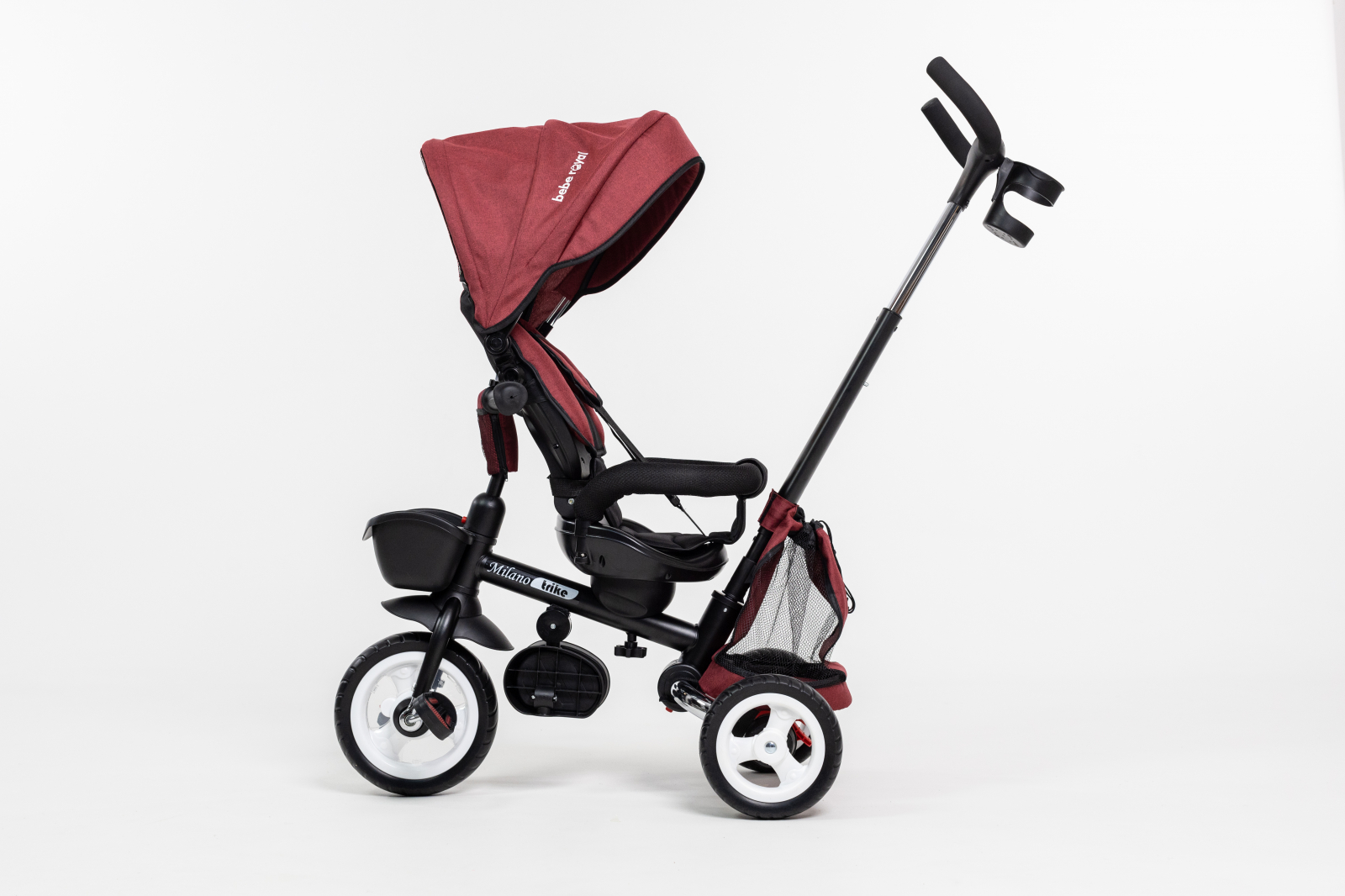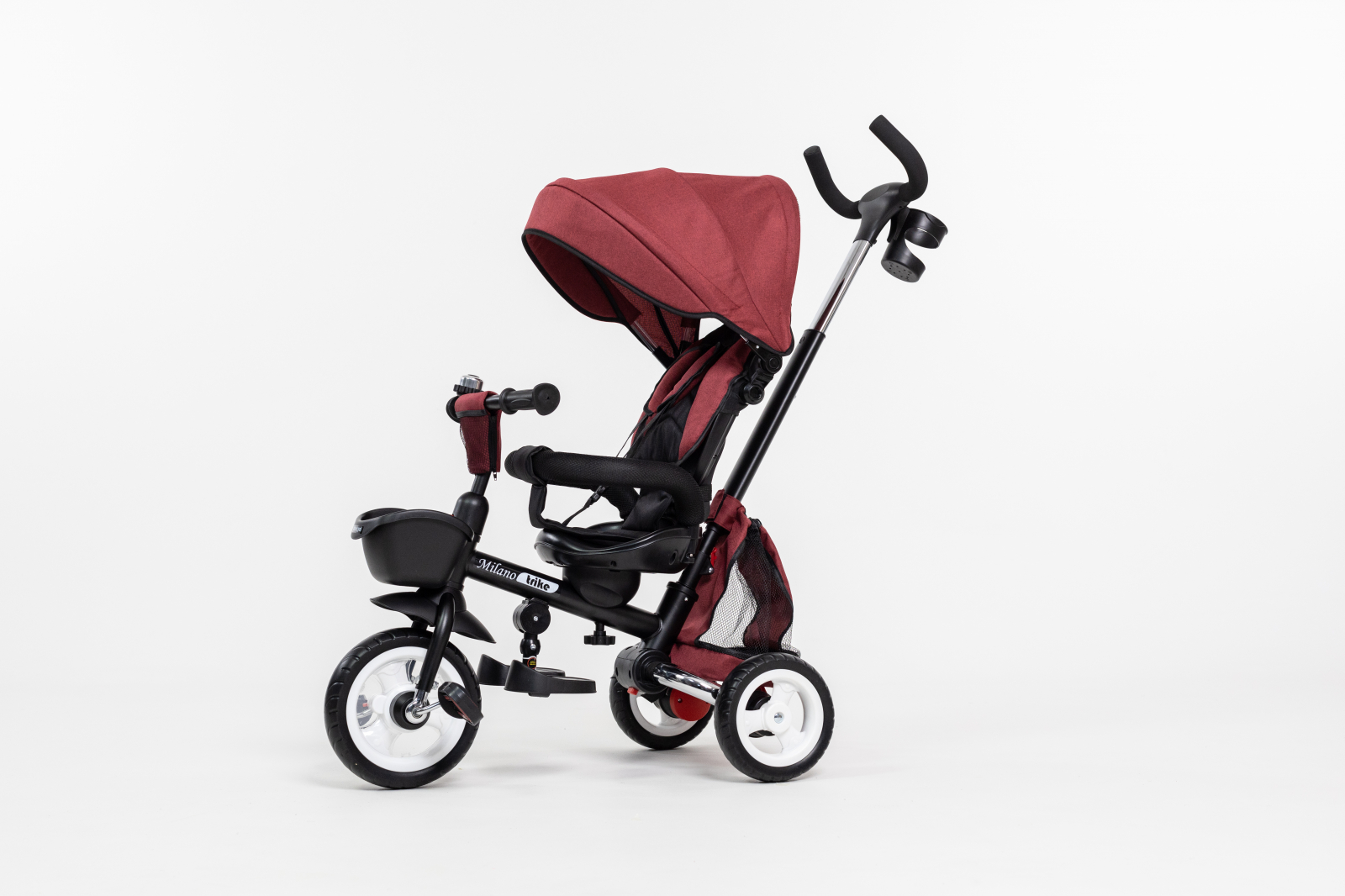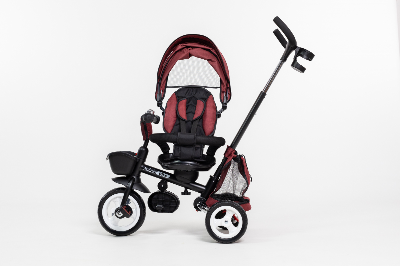 Tricicleta Milano se pliaza, scaunul este reversibil si are nenumarate accesorii care te ajuta la plimbarile cu cel mic. Centuri de siguranta in cinci puncte, sistemul "roata libera" al rotii fata care va permite blocarea pedalei, atunci cand copilul este prea mic sa pedaleze. Maner ghidare si copertina reglabila.