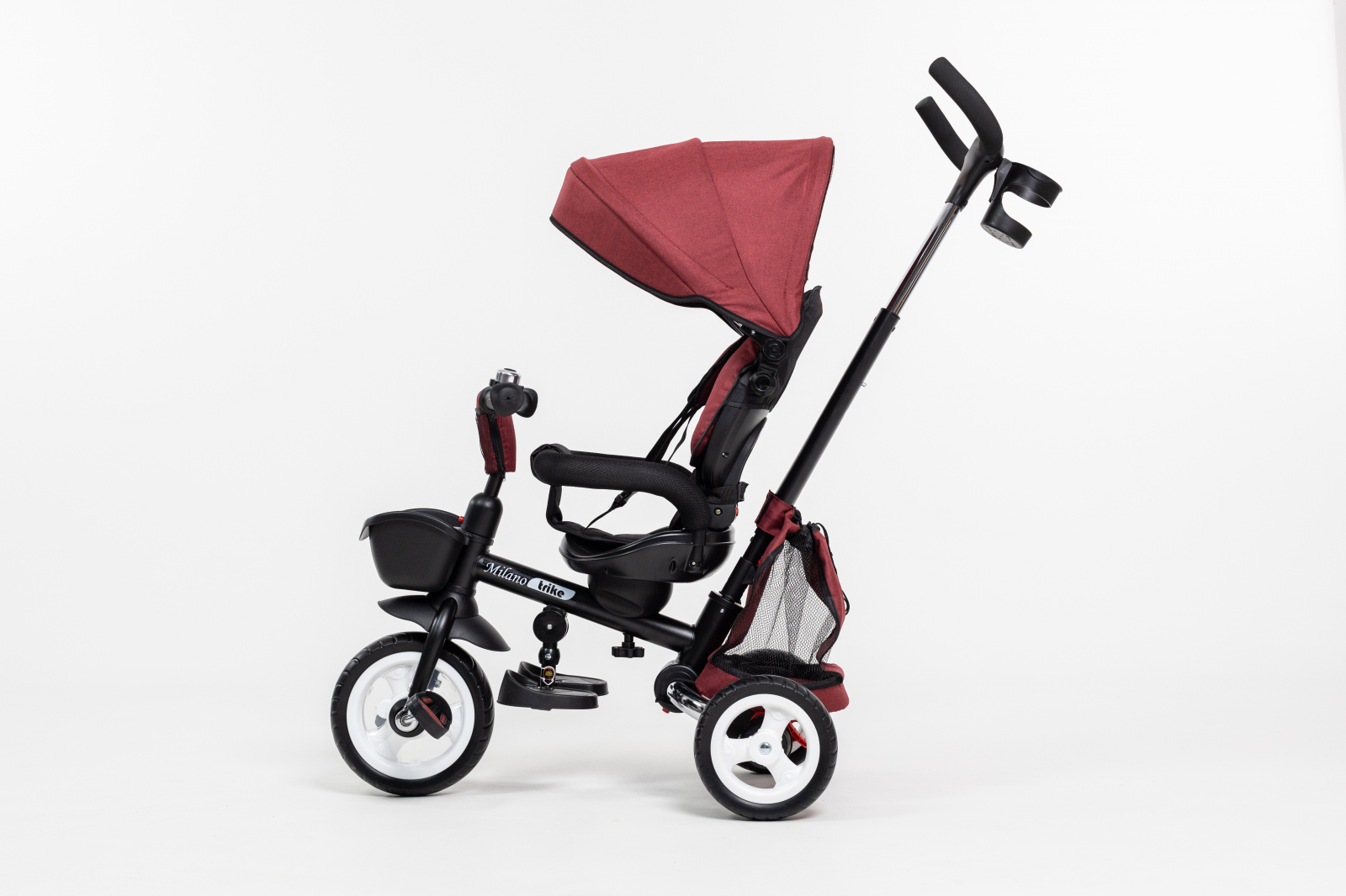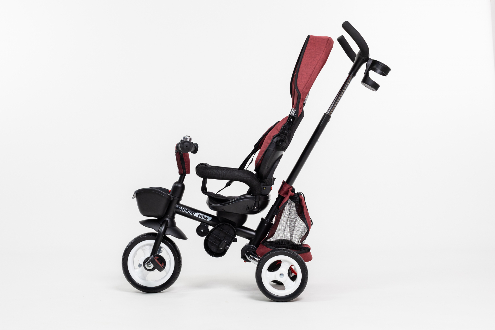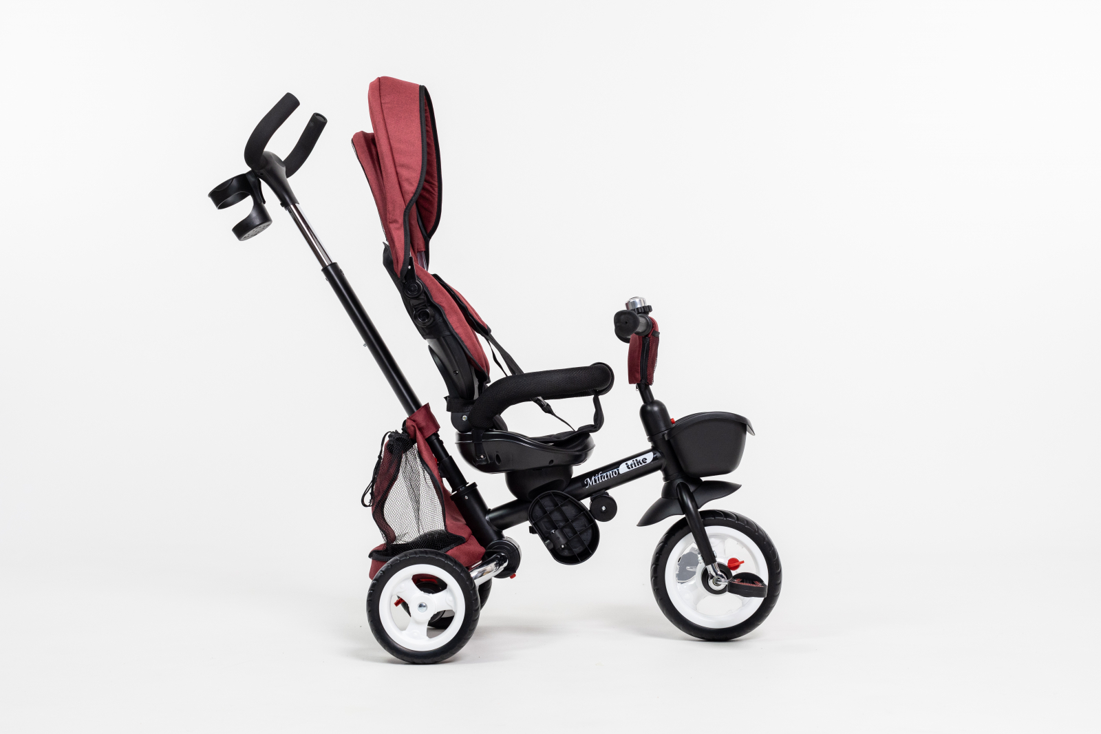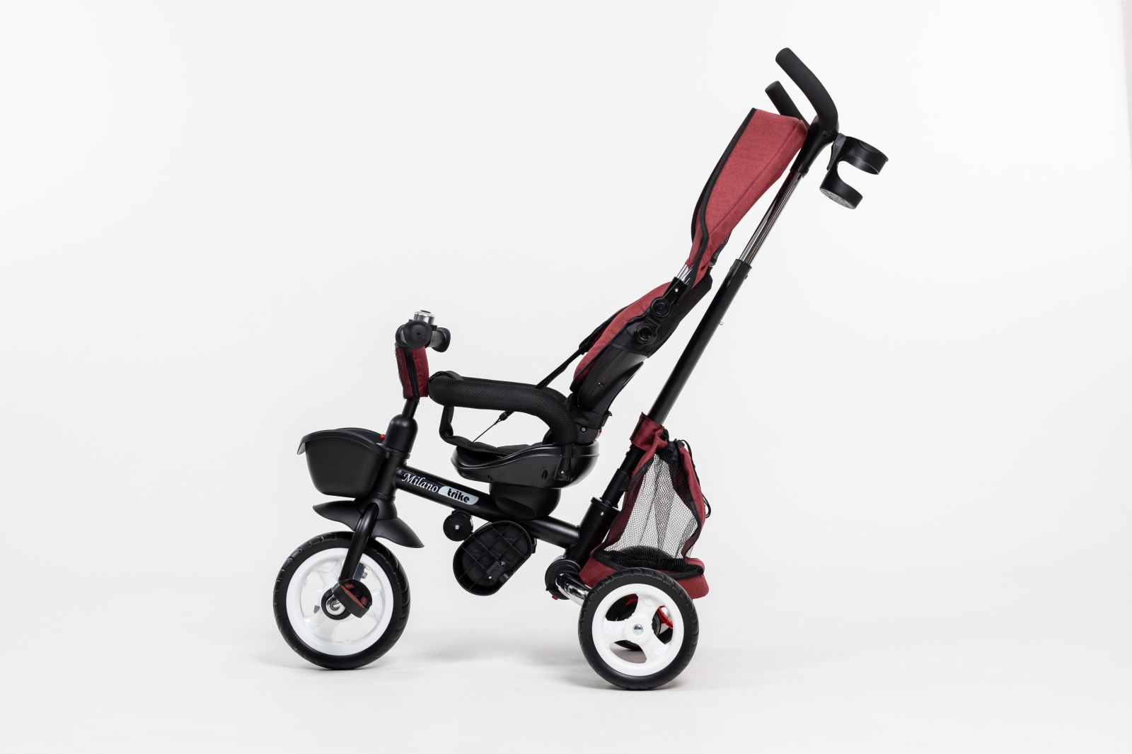 Tricicleta Milano va ofera posibilitatea de a o folosi atat cu fata in directia de mers, cat si cu fata la parinte prin sezutul reversibil care se activeaza prin apasarea unui singur buton.